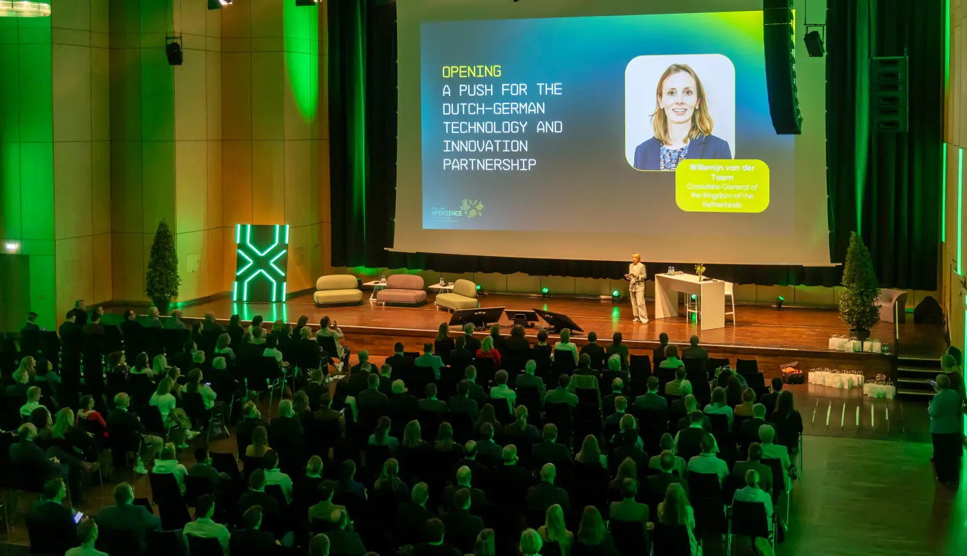 In de spotlights stonden de toekomstthema’s batterijen, waterstof, gezondheid & medtech, advanced manufacturing & robotica, chiptechnologie, veiligheid en defensie en de circulaire economie. De Nederlandse consul in Düsseldorf, Willemijn van der Toorn, opende de Xperience en benadrukte het belang van innovatie, technologische kracht en nauwe samenwerking: “Innovatie ontstaat niet in haar eentje. Ze ontstaat in dialoog, door uitwisseling, door verschillende perspectieven – en vooral door samenwerking.”